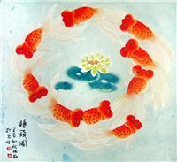 • 产品简介: 斗方花鸟画鲤鱼图,韩梅老师作品。