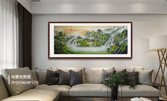 第一字画网的旭日东升风水画《春山朝辉》,小六尺作品裱完后长度2.2米左右,是一幅大气磅礴的山水作品,适合挂在客厅或是公司的会议室等场合,作品意境生动、山水交汇、细节出色,后侧的红日寓意着旭日东升。如果放在画廊出售,诸葛明科老师此幅国画旭日东升山水画旭日东升的标价在5000元左右。