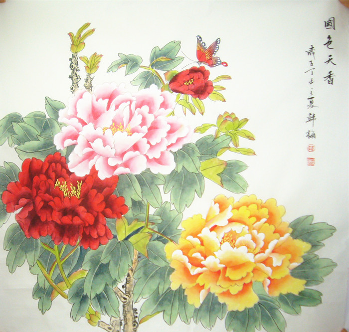 【尺寸】斗方工笔牡丹画《国色天香》