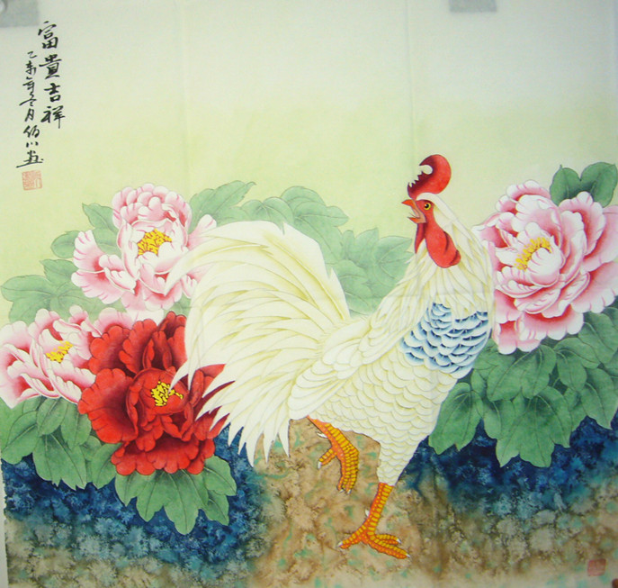 • 产品简介: 工笔雄鸡花鸟画,谭佰川老师作品