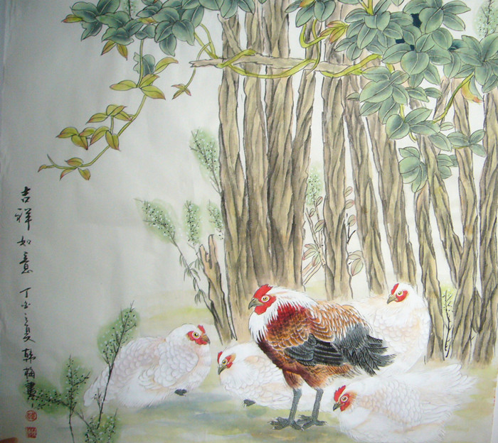 第一字画网的工笔雄鸡大吉大利图 ,作品适合挂在餐厅、,也可以挂书房、卧室或是玄关过道处,是一幅很有意境的工笔雄鸡大吉大利图作品。四尺斗方的工笔雄鸡大吉大利图,画的精彩的就更少了,这幅作品从构图和层次等细节处都可以看出是一幅用心精彩之作,如果放在画廊出售,韩梅老师此幅斗方雄鸡图的价格大约在1800元左右。