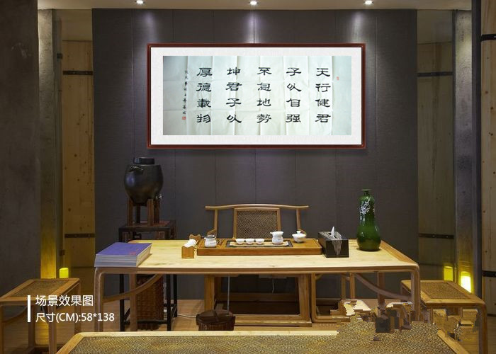 第一字画网的四尺天行健办公室书房书法,这幅书法非常适合挂在书房或客厅,装裱后尺寸达到1.8米长,作品笔法老练,苍劲有力,如果放在画廊出售,寿善老师此幅办公室、书房诗词书法的价格在1800元左右。