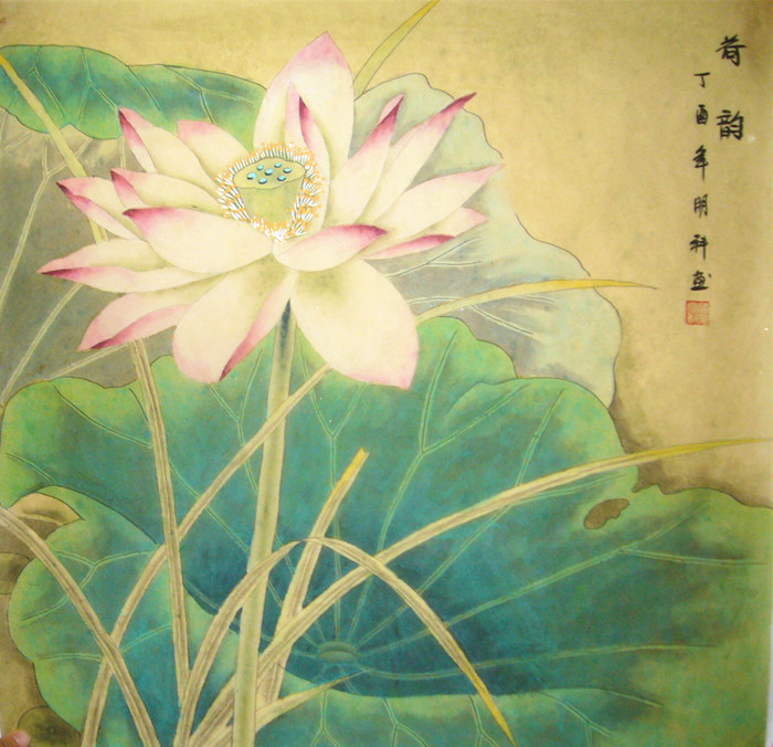 • 产品简介: 斗方花鸟画荷花图《荷韵》,诸葛明科老师作品。
