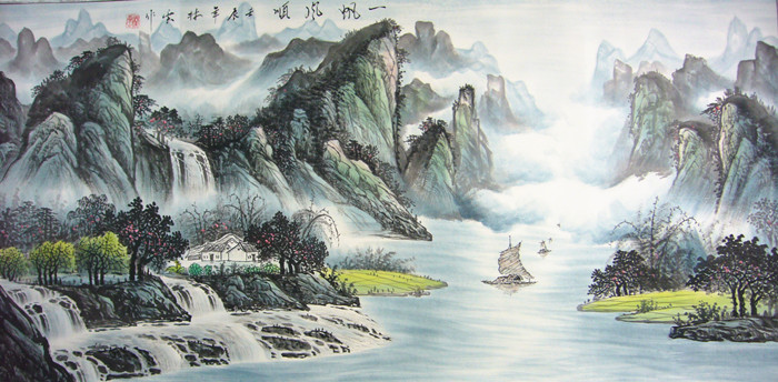 国画山水画一帆风顺