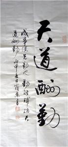竖幅字画作品装裱成轴的效果(方便直接悬挂)