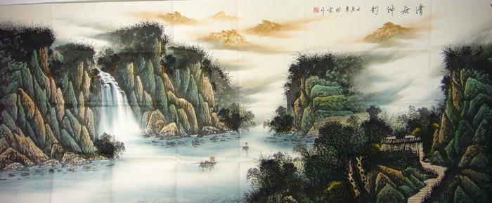 第一字画网的客厅国画山水画,小八尺山水画作品画芯长2.4米,是一副意境深远的小八尺山水作品,作品清新秀雅,布局合理,这幅山水美景视觉效果上佳,题字为源远流长。如果放在画廊出售,林云老师此副小八尺山水画作品的标价在4000元左右。
