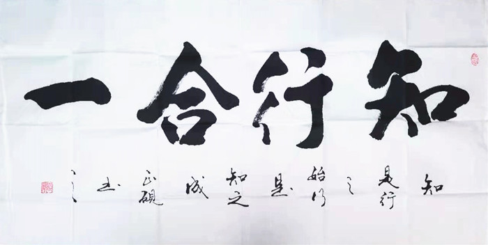 第一字画网的办公室书法知行合一,是幅适合挂办公室或会客室的书法作品,作品是广西书法家甘正砚老师的四尺书法,这幅书法笔法洒脱,气势稳重,已经完成了装裱,装裱后尺寸达到1.8米长,如果放在画廊出售,广西书法家甘正砚老师这幅四字成语知行合一书法的标价在1500元左右。