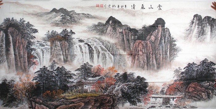 第一字画网的水墨山水作品,这幅八尺山水画作品裱完后尺寸近3米左右,是一副气势磅礴的八尺山水作品,作品清新秀雅,布局合理,这幅山水美景视觉效果上佳,寓意源远流长。如果放在画廊出售,林云老师此幅八尺水墨山水作品的标价在3500元左右。