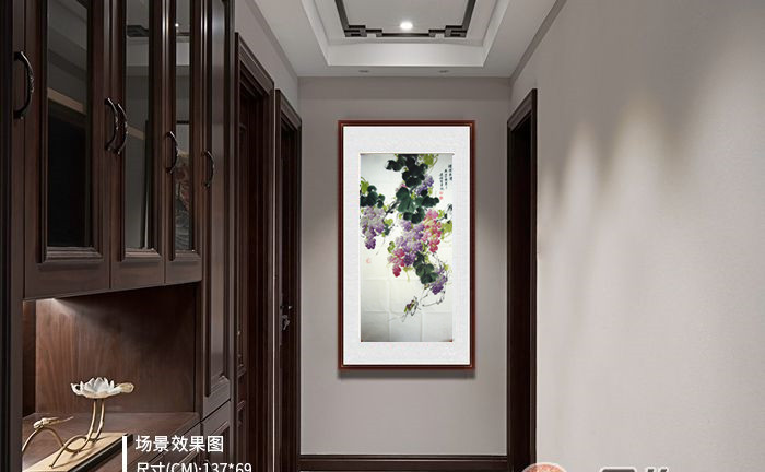 第一字画网的国画葡萄图《珠圆玉润》,是著名画家覃连杰老师的四尺佳作,可以装裱成卷轴,是一幅非常清新的作品,作品画风细腻、水准出色,适合挂在家里的客厅或书房,如果放在画廊出售,覃连杰老师此幅四尺名家水墨画荷花的标价在3000元左右。