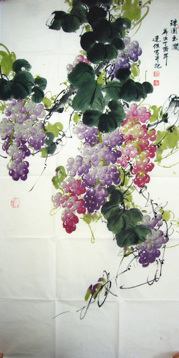 • 产品简介: 国画葡萄图《珠圆玉润》,覃连杰老师四尺作品。