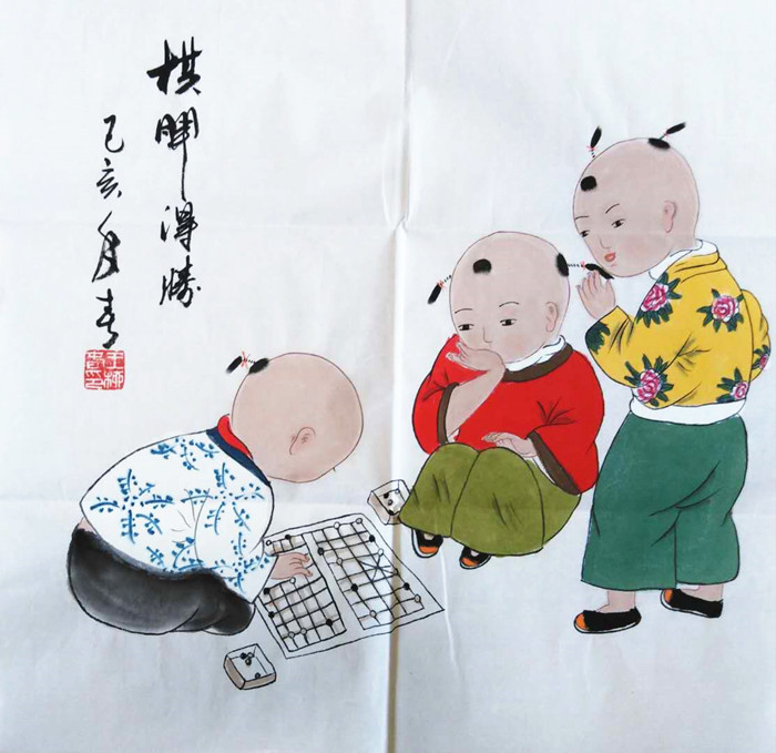 第一字画网的童子画,这幅三尺斗方童子画裱完后尺寸近0.6米见方,是一副水准上佳的工笔画作品,作品画风细腻、人物生动栩栩如生,挂在家里客厅或是送人都是非常不错的选择,如果放在画廊出售,王柳春老师此幅童子画的标价在1500元左右。