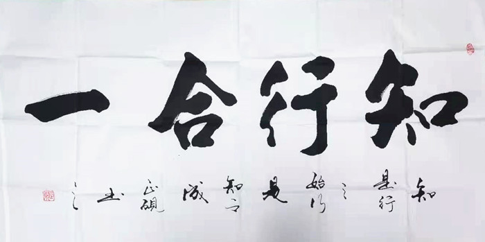 第一字画网的办公室书法知行合一,是幅适合挂办公室或会客室的书法作品,作品是广西书法家甘正砚老师的四尺书法,这幅书法笔法洒脱,气势稳重,已经完成了装裱,装裱后尺寸达到1.8米长,如果放在画廊出售,广西书法家甘正砚老师这幅四字成语知行合一书法的标价在1500元左右。