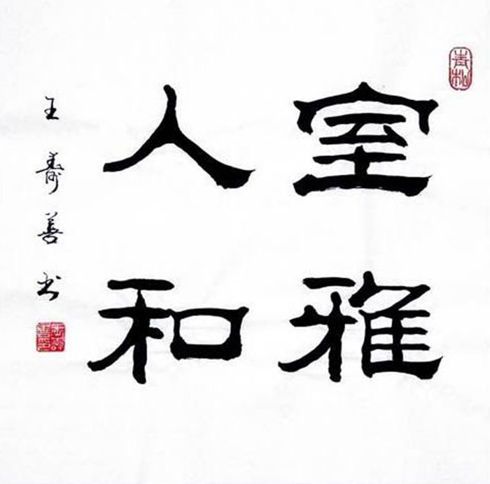 第一字画网的斗方书法室雅人和是幅适合用作办公室场合或书房的书法作品,这幅隶书书法是山东书法家王寿善老师的作品,装裱后尺寸为0.45米长,如果放在画廊出售,王寿善此幅人生名句书法作品的标价大约在800元左右。