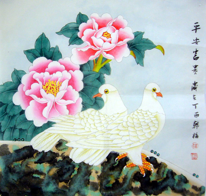 • 产品简介: 牡丹花鸟《平安富贵》,韩梅老师作品。