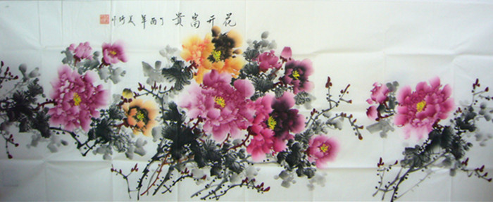 第一字画网新到的国画牡丹图花开富贵,数量只有唯一一幅,这幅小六尺写意牡丹画画风细腻、挂在餐厅、客厅、书房都可以,如果放在画廊出售,王美琦老师此副小六尺牡丹画作品装裱后的价格大约在1800元左右。
