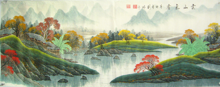 第一字画网的客厅国画山水画《云山气清》装裱以后在2.2米左右,是一幅大气磅礴的小六尺山水,作品意境生动、山水交汇,清新秀雅,布局合理,视觉效果上佳,看作品的气势、云层和山脉的细节,就能看出老师的深厚画功,画面上的红日寓意着鸿运高照,如果放在画廊出售,刘淋老师此幅山水画的标价在5000元左右,作品的气势和画功都是一流的,适合挂在客厅、或公司的会议室等场合。