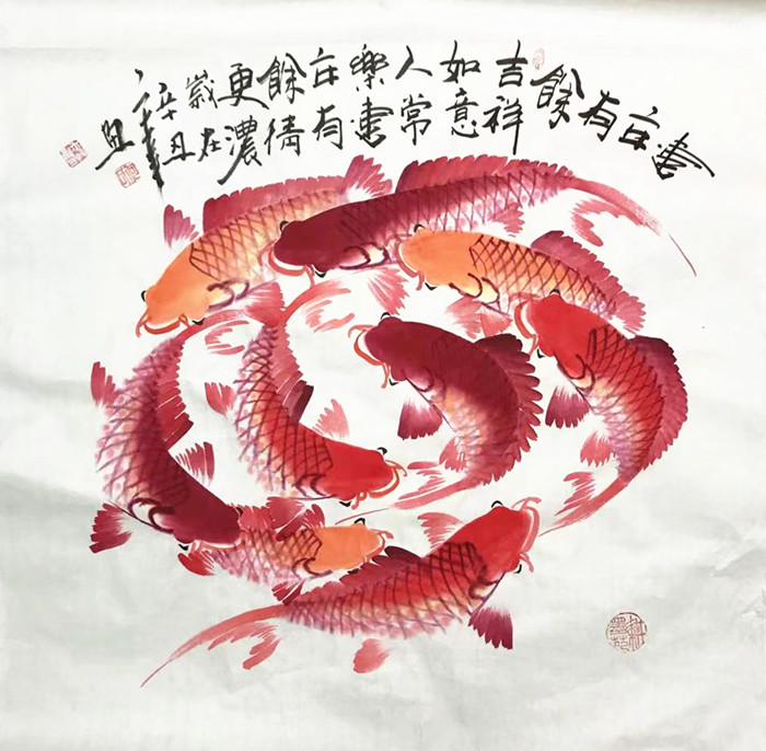 【尺寸】国画九鱼图鱼