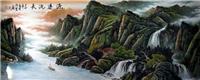 聚宝盆:此画是第一字画网推荐的客厅山水画旭日东升刘淋老师整幅作品根据风水布局、财运如浩浩瀑水,生生不息之意。作品整体看来象个金元宝。远山层峦叠峰,更表达了源远流长的意境。因此挂山水画是非常吉利的。将此风水画悬挂于厅堂,立添主人财气,令人一见即生舒适安逸之感,获人兴财旺之效。青山绿松间配上了瀑布流水,不仅给画面增添了灵韵和动感,更表现了一种财源滚滚,源远流长的吉祥意义。非常适合家居,企业正堂装挂及馈赠亲朋好友的上佳之选~