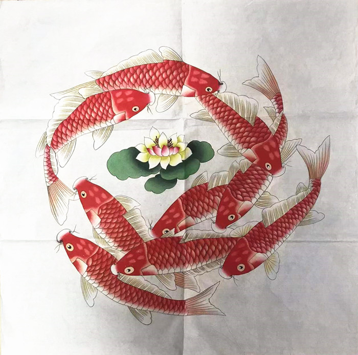 第一字画网的四尺斗方九鱼图,这幅四尺斗方的玄关画九鱼图装裱后尺寸为0.8米左右,是一幅非常温馨的作品,作品画风细腻、栩栩如生,十分雅致。挂在家里客厅或公司的会客室都是非常不错的选择,亦可用作送礼等场合,如果放在画廊出售,诸葛明科老师此幅工笔玄关装饰国画的标价在2000元左右。