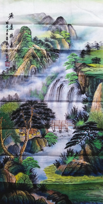 第一字画网的玄关装饰画聚财山水画,这幅四尺的家居装饰字画聚财山水画尺寸近1.8米左右,是一幅大气磅礴的四尺山水作品,作品雄浑苍劲,清新秀雅,布局合理、气势磅礴,这幅山水美景视觉效果上佳。如果放在画廊出售,刘淋老师此幅聚财山水字画的标价在3000元左右。