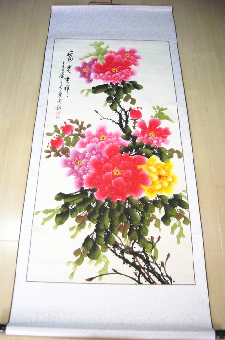 第一字画网的四尺写意牡丹画,这幅四尺孔雀牡丹裱完后尺寸近1.8米,是一幅水准出色的作品,作品的画面上画风细腻、栩栩如生,十分温馨,挂在客厅或各类场合都是非常的喜气,如果放在画廊出售,西北画院李庆老师此幅副写意牡丹画的标价在900元左右。