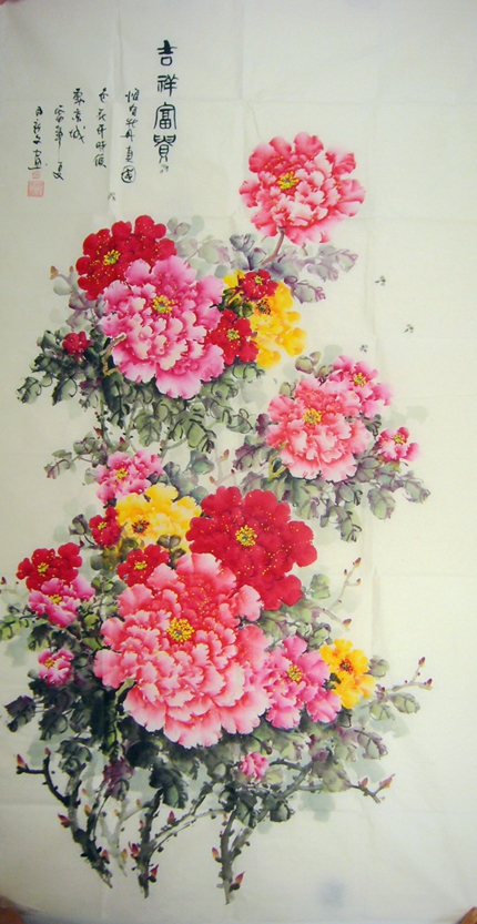 • 产品简介: 富贵牡丹图,弘文六尺佳作。